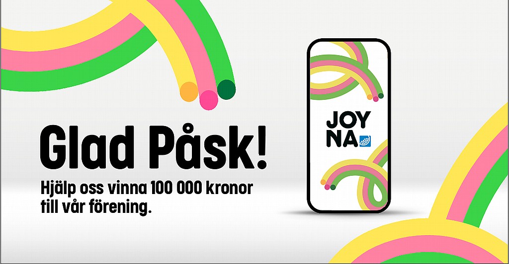 Folkspels nya prenumerationslotteri JOYNA har en stor påskkampanj och Hudikgympan har nu chansen att vinna 100 000 kronor om vi registrerar minst 100 medlemmar senast den 7:e april.