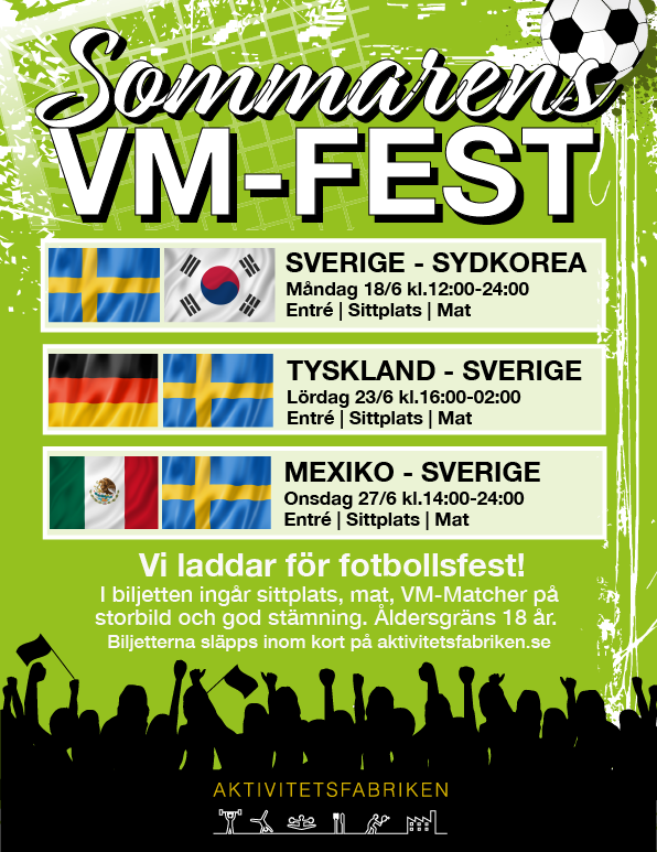 Du som är fotbollsintresserad och vill uppleva en VM- känsla genom att se matcher på storbild i Aktivitesfabriken.
