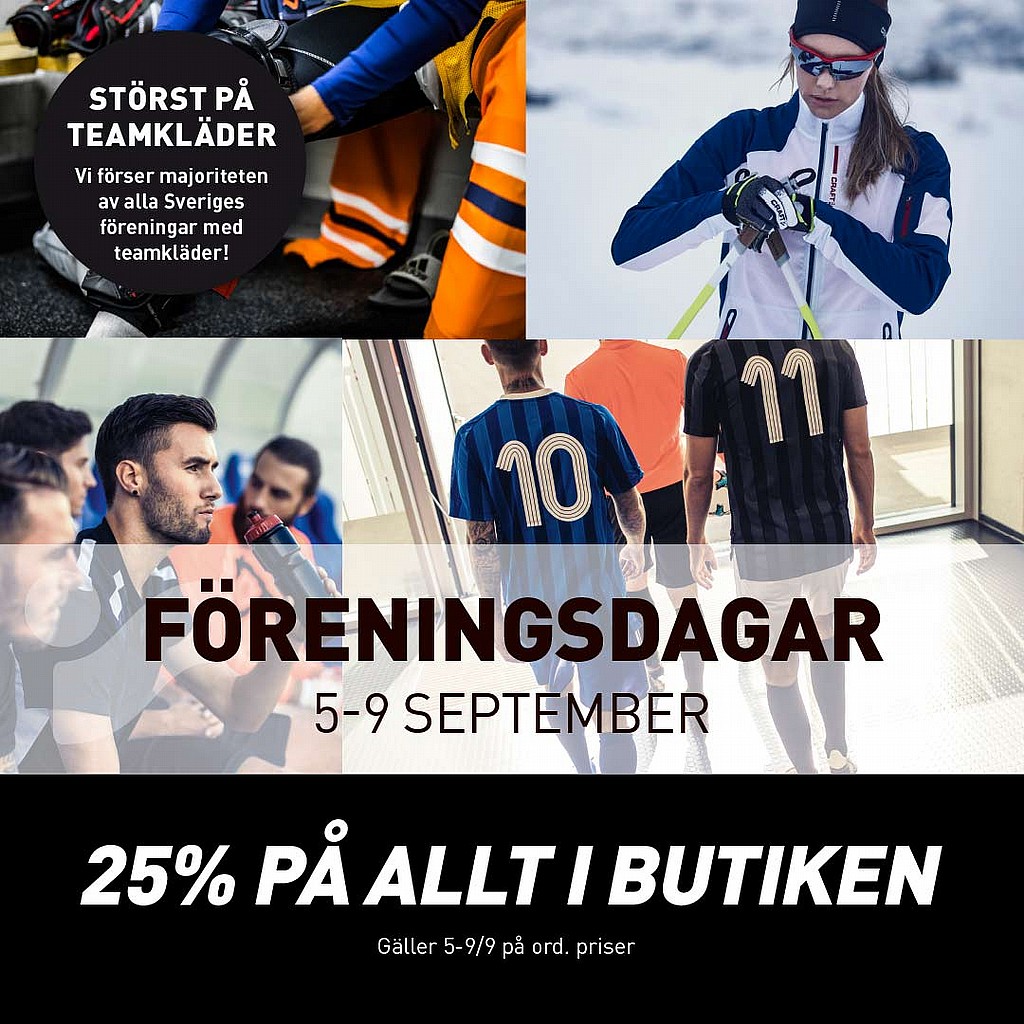 5-9 september 2018 är det föreningsdagar på Intersport. Du som medlem hos oss får 25% rabatt. Säg bara att du är medlem i Hudikgympan!
