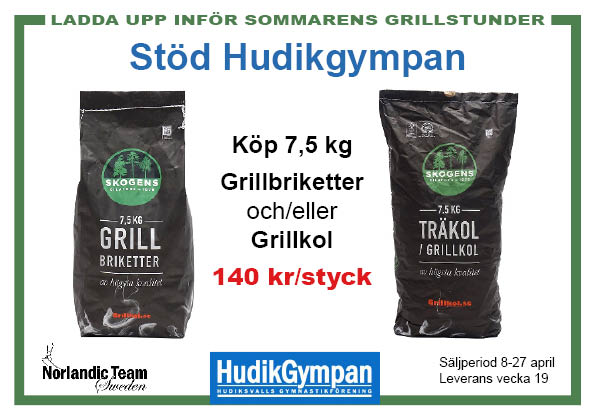 Om du vill beställa Skogens grillkol och stödja Hudikgympan.