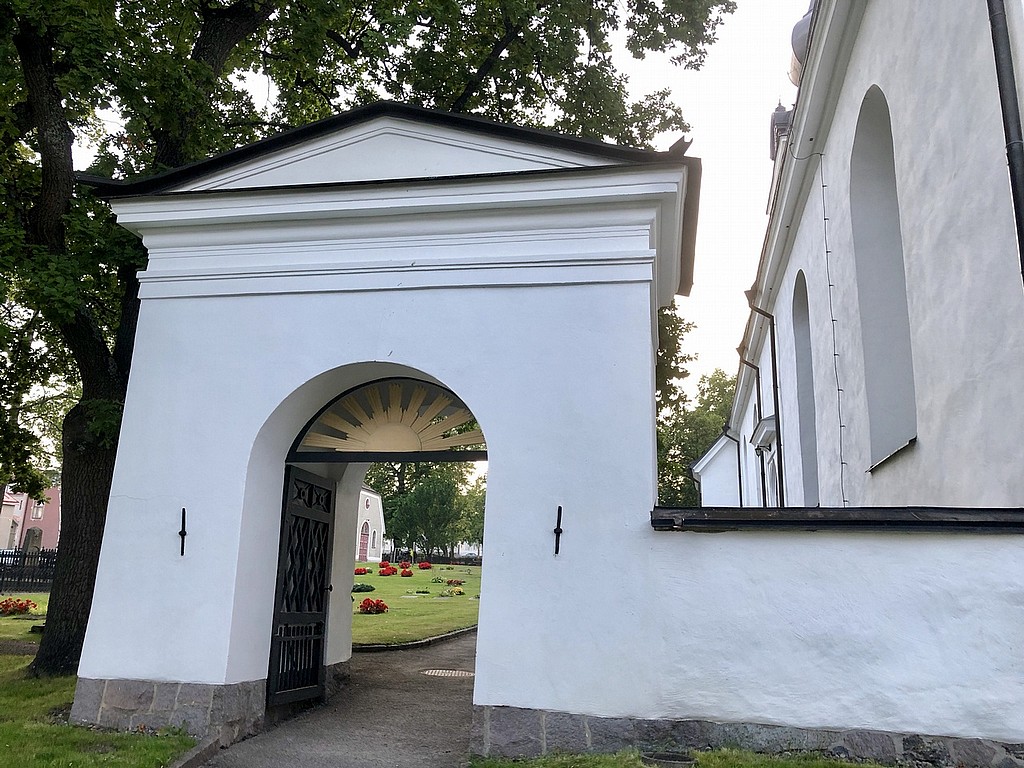 Sankt Jakobsgården upp till kyrkan. En gymnast från Hudikgympan och en spelare