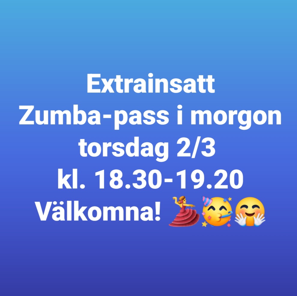 Extra-insatt Zumba fredag 9/2 kl 18. Välkomna!
