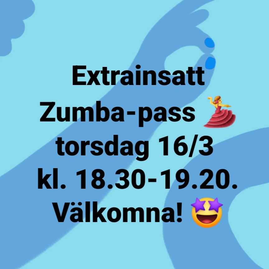 Extrainsatt Zumba-pass nu på torsdag 16/3 kl. 18.30-19.20.