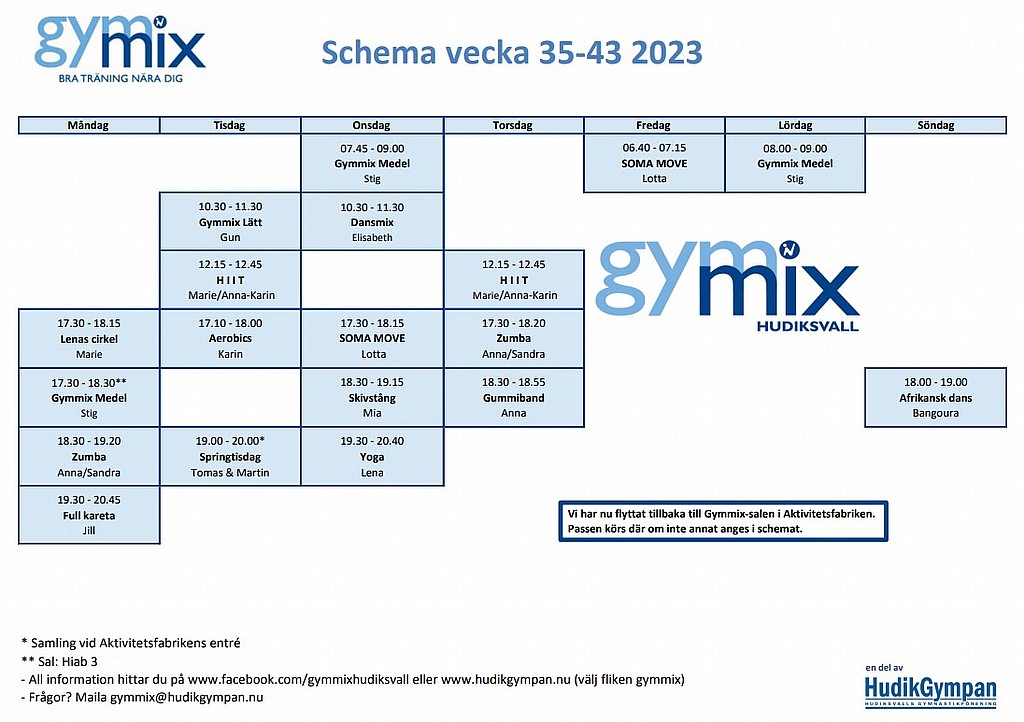 Vilken härlig uppstartsvecka vi har! Här kommer terminens ordinarie schema som börjar gälla på måndag. Vi ser fram emot en härlig träningshöst med er!