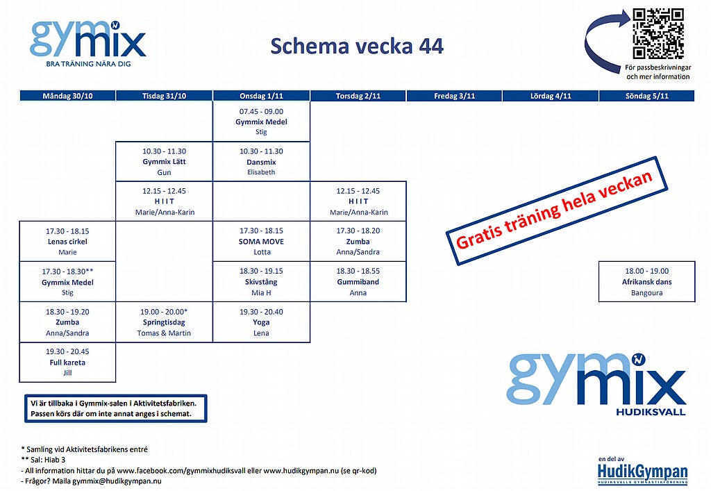 Gymmix-schema vecka 44 (30/10-5/11)
