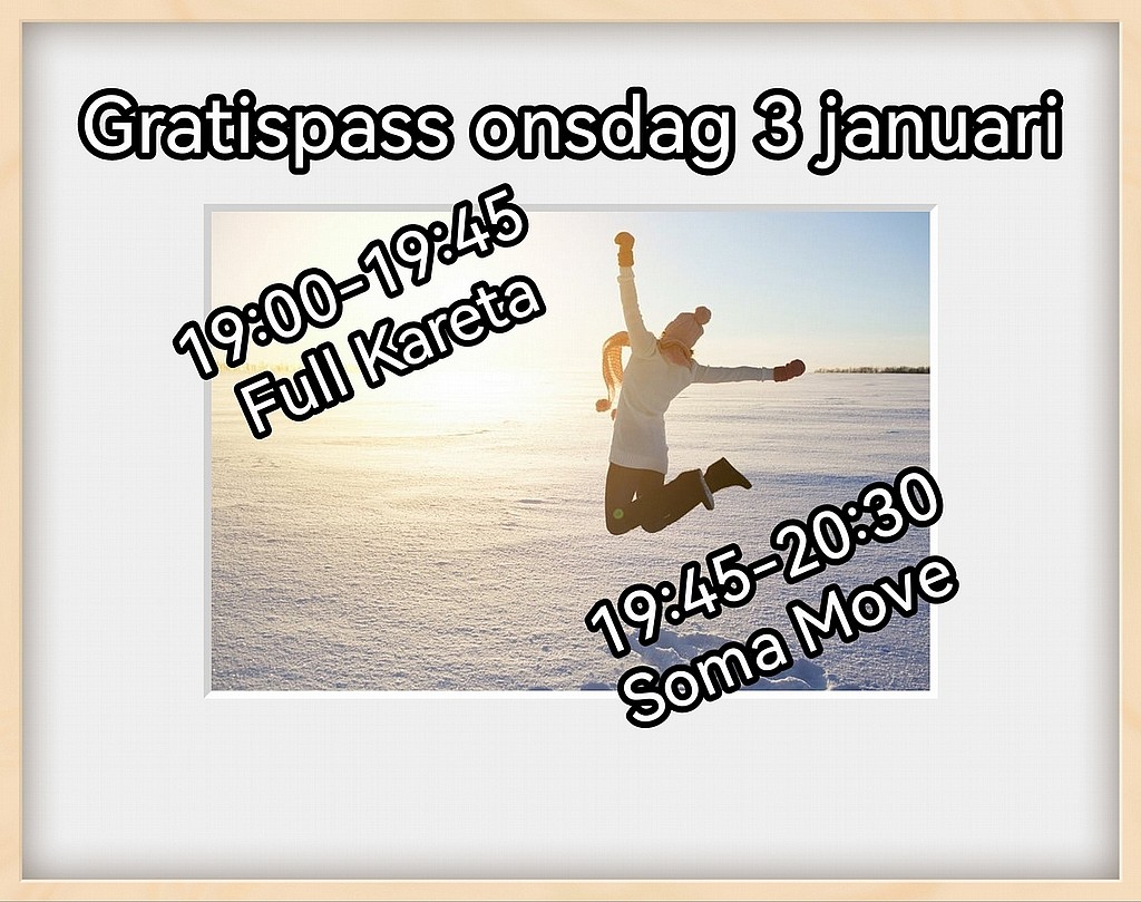 Ingen förbokning behövs, det är bara att dyka upp. Samma upplägg som 2023 års sista pass: 45 minuter Full Kareta med Jill (19:00-19:45) följt av 45 minuter Soma Move med Lotta (19:45-20:30), och du väljer själv om du går på ett pass eller båda. Sist blev vi 20 pers, kan vi slå det? 🥰