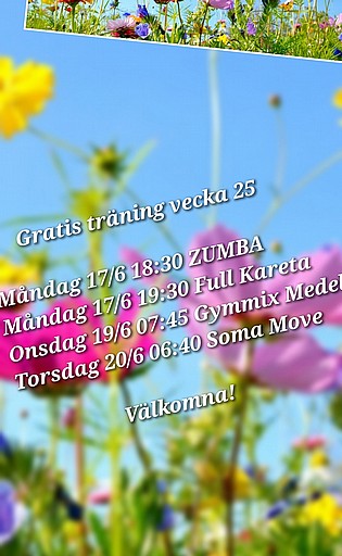 - Onsdag 19/6 07:45-09:00 Gymmix medel med Stig - Torsdag 20/6 06:40-07:15 Soma Move