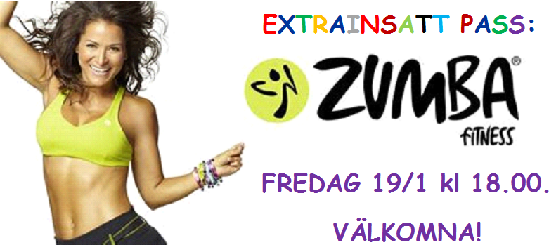 Extrainsatt Zumba Fitness fredag 12/1 kl 18. Välkomna!
