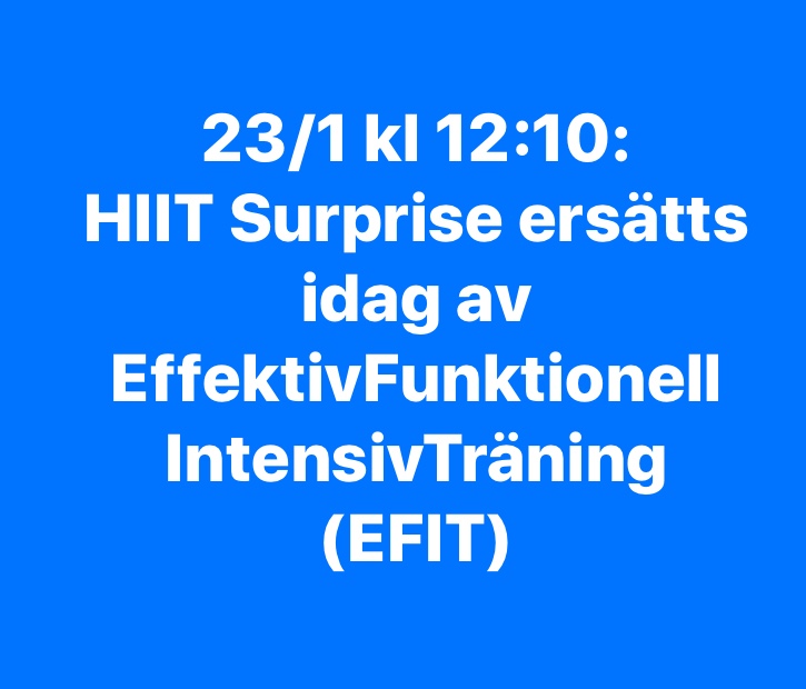 EFIT istället för HIIT idag på lunchen. Fortfarande Träning. Fortfarande Intensivt. Fortfarande individuell gruppträning, bara du kan bestämma hur jobbigt det blir för just dig. Välkomna! 🏋