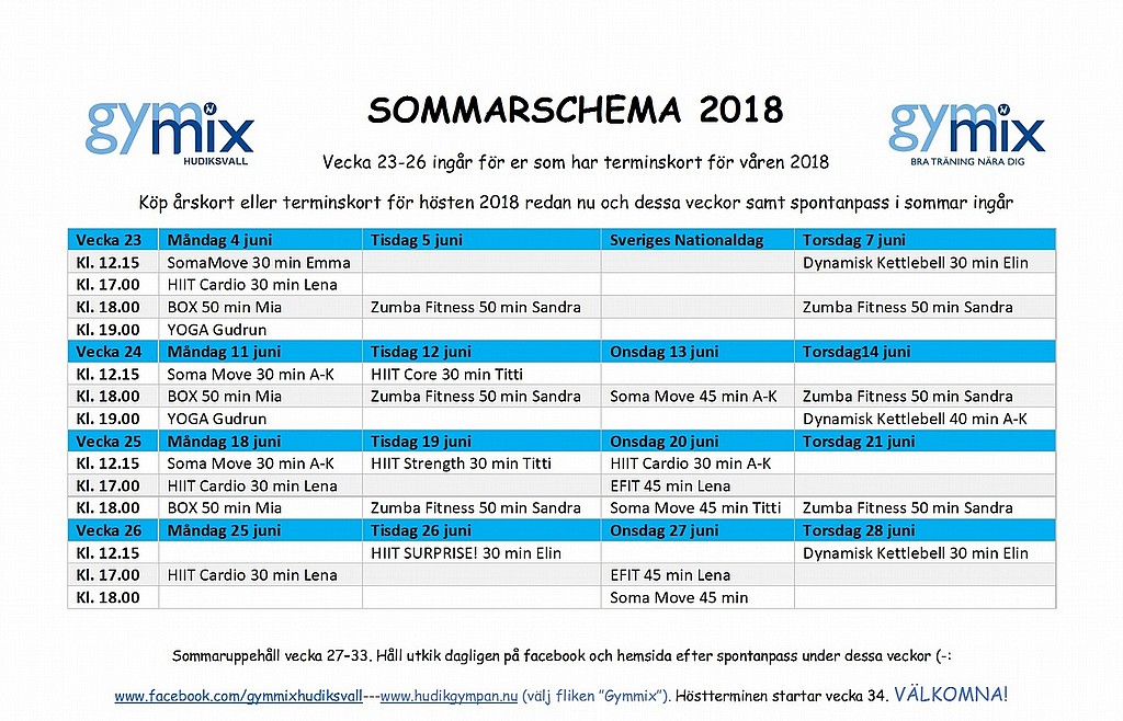 Sommarschema för veckorna 23-26 2018