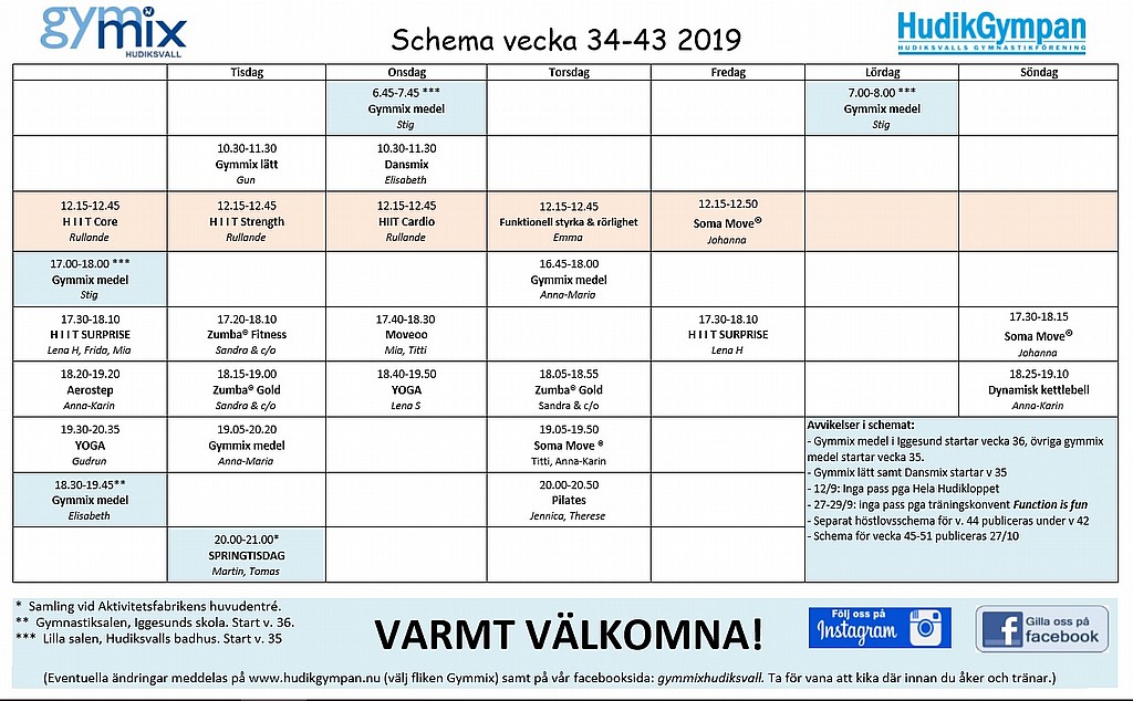 Vilken höst det här kommer att bli! Vi kör igång måndag 19 augusti och hela första veckan (vecka 34) är det gratis att träna hos oss, så ta med dig alla du känner så att de får prova på en vecka hos Gymmix i Hudiksvall.