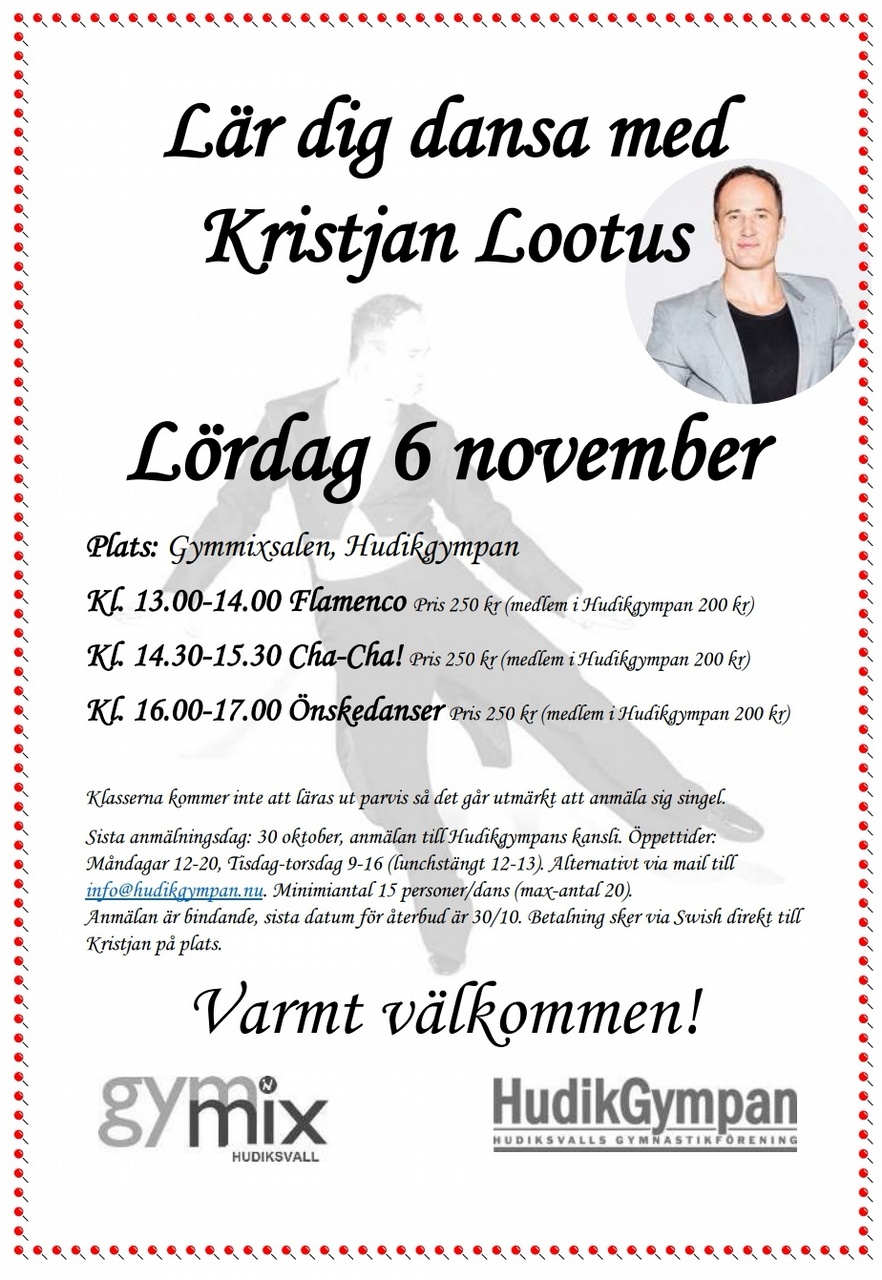 KOLLA HÄR! Lördag 6 november kommer Kristjan Lootus till oss och lär ut danser: