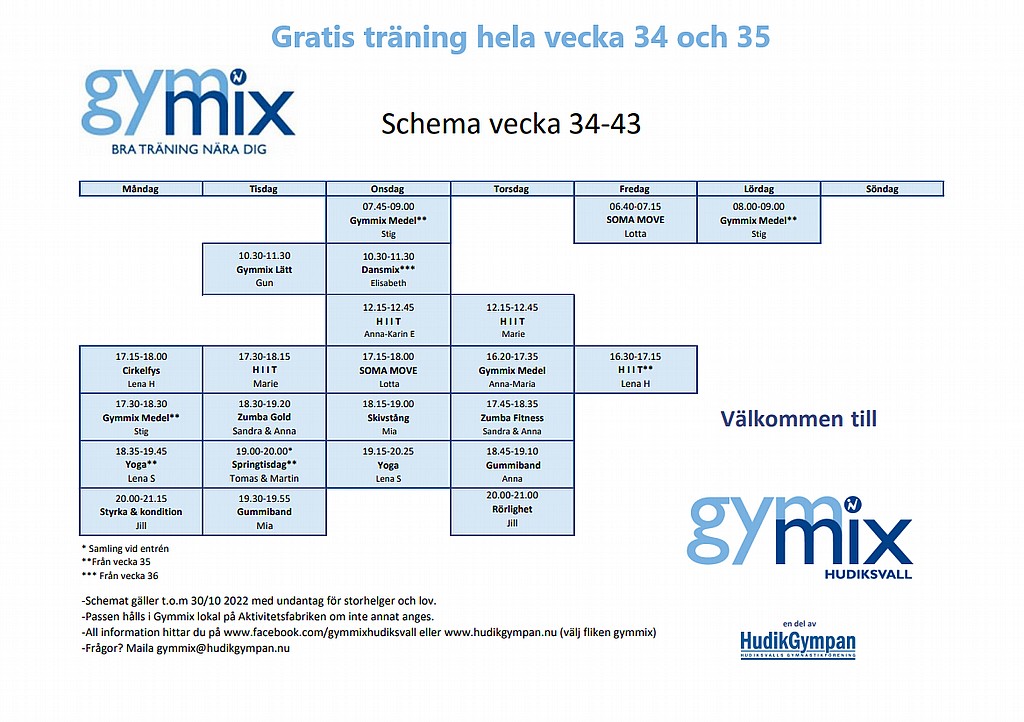 Höstens Gymmixschema är klart!